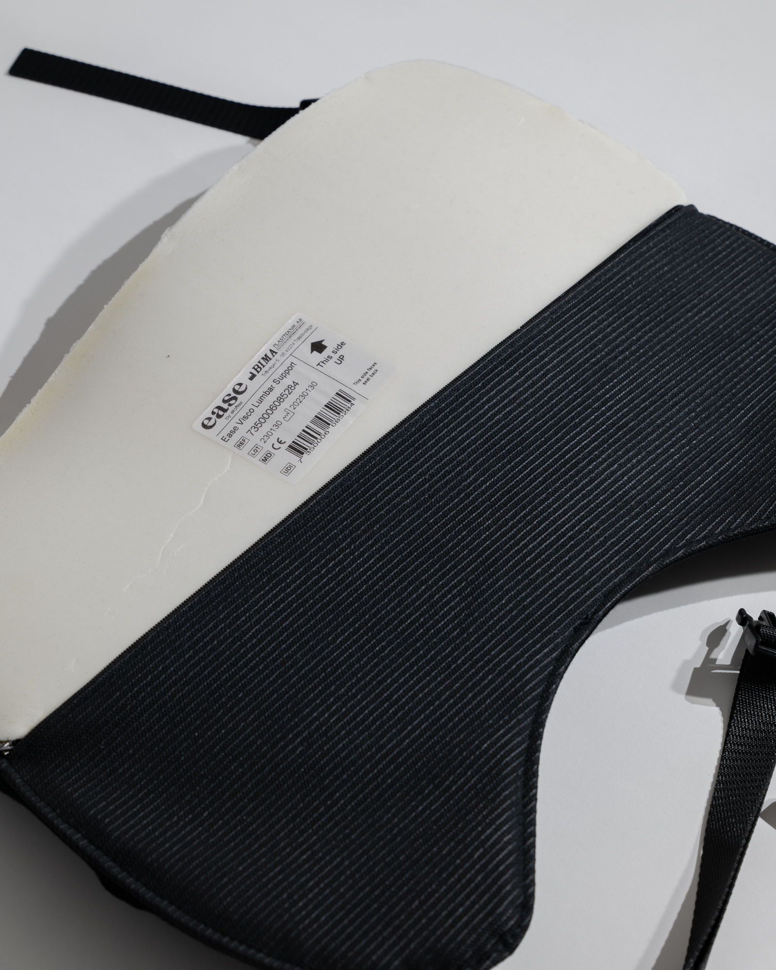 De Ease-lendensteun is gemaakt van stevig en duurzaam visco-elastisch 'memory'-schuim. In tegenstelling tot gewoon schuim reageert traagschuim op lichaamswarmte en druk, wordt het zachter en vormt het zich naar de lumbale 'lagere' wervelkolom om vermoeidheid van de rug te verminderen.