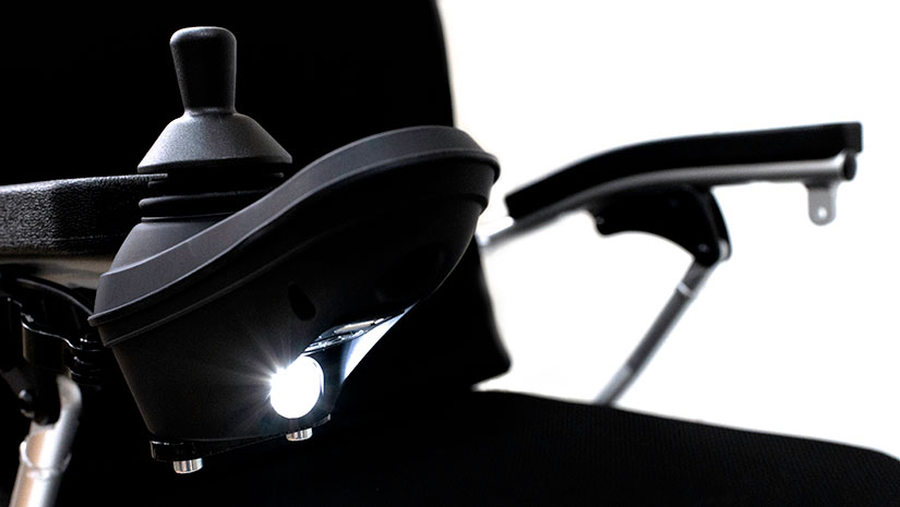 Le modèle A vous offre la flexibilité de choisir la configuration idéale pour vos besoins. Par exemple, le joystick peut rester sur l’accoudoir comme d’habitude si vous préférez, vous donnant ainsi la possibilité de reprendre le contrôle si nécessaire. Le nouveau joystick est également doté d’une lumière qui éclaire le chemin à suivre, bien que cette fonction ne puisse être utilisée que lorsque vous conduisez sans le contrôle accompagnateur.