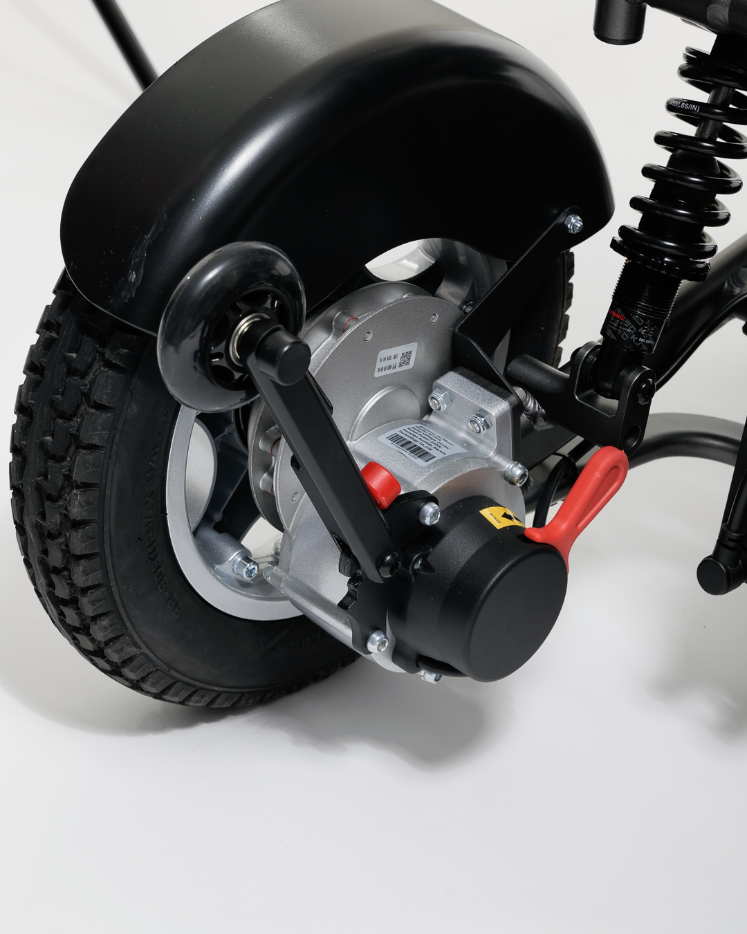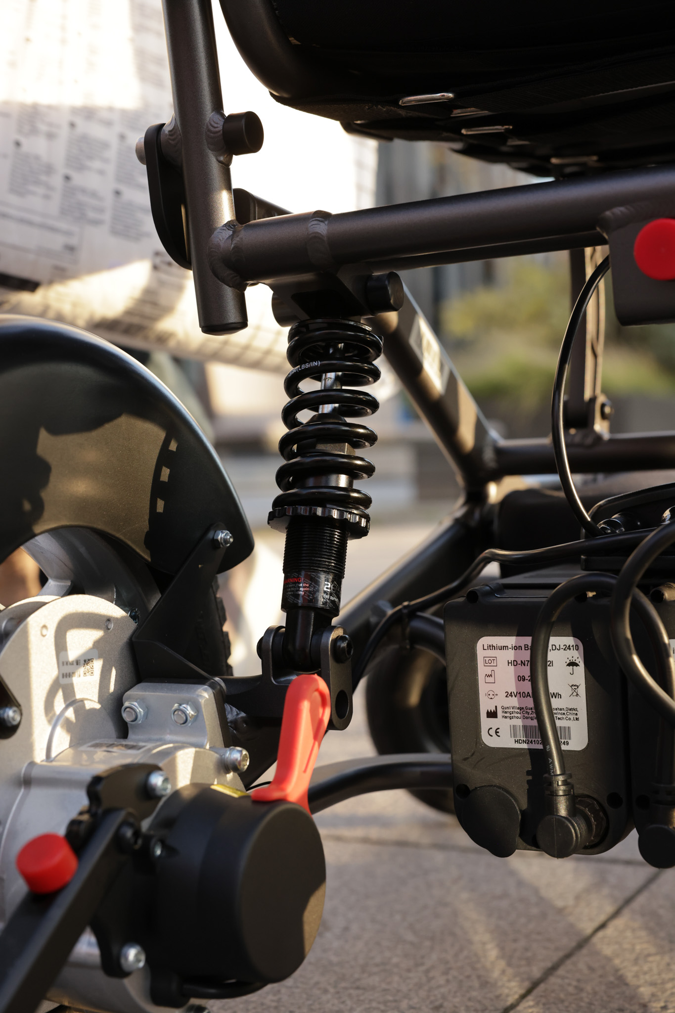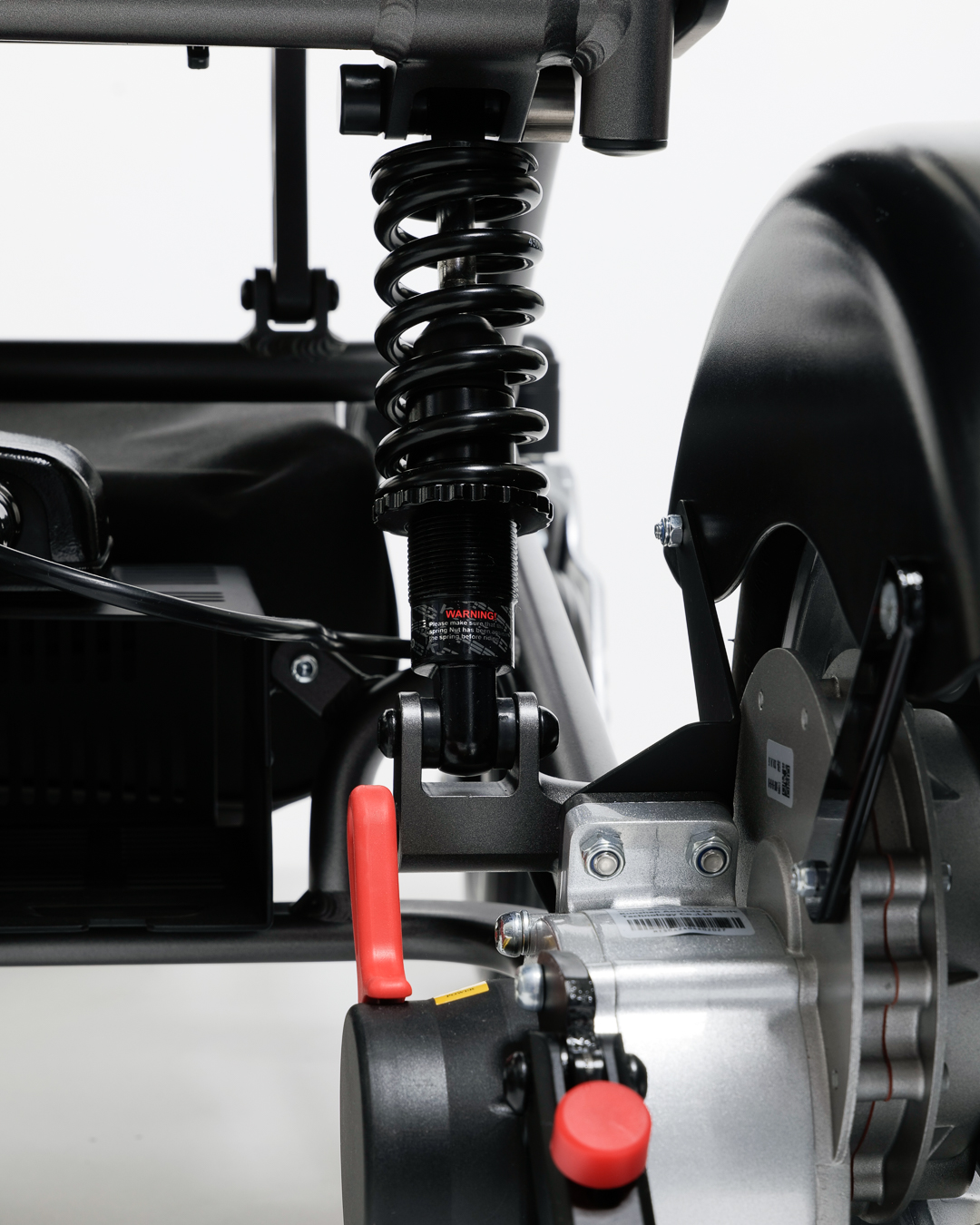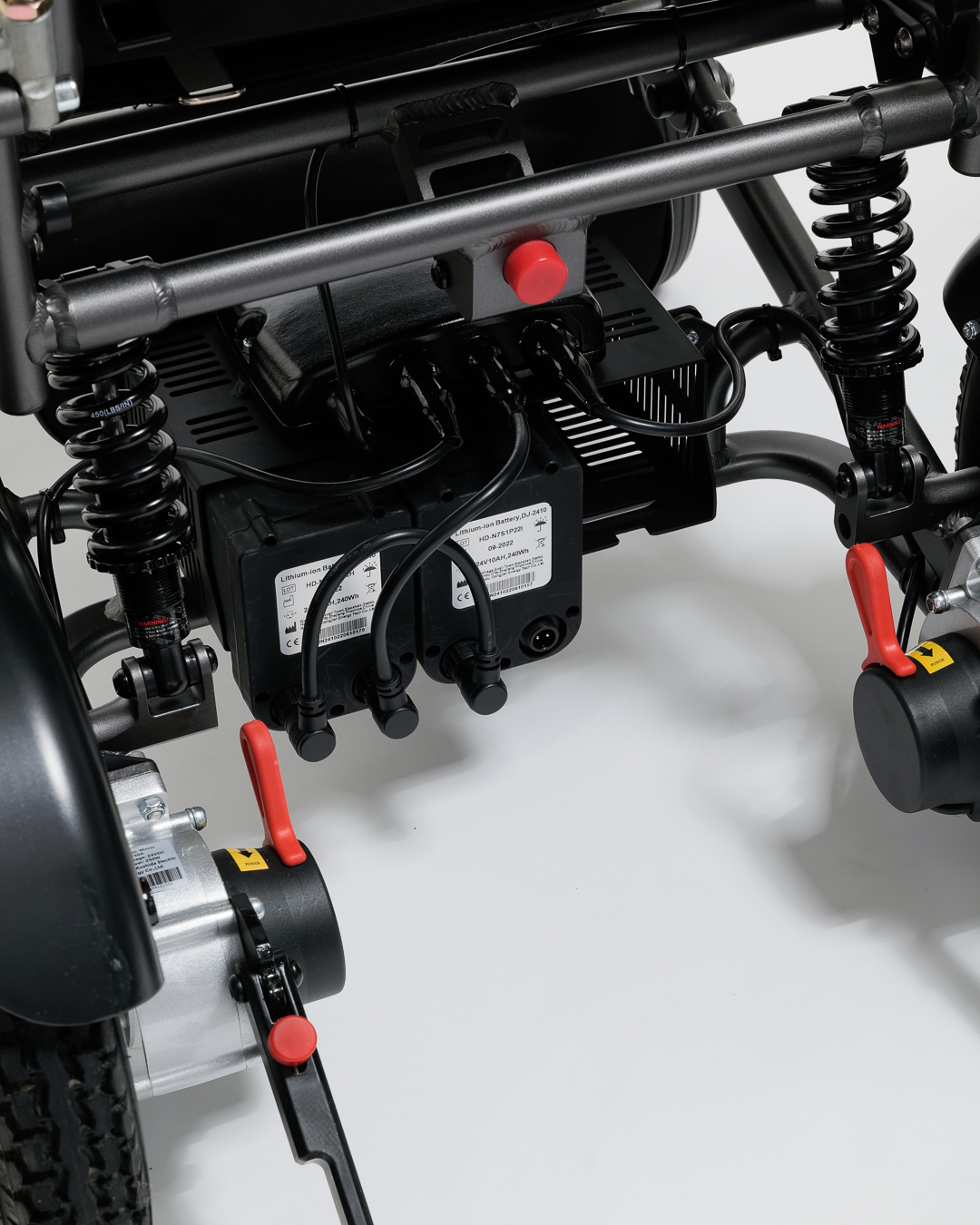 Grâce à ses 4 suspensions des roues avant et arrière, ce fauteuil assure une conduite souple et confortable. La qualité de la conduite est encore améliorée par son châssis renforcé et solide.