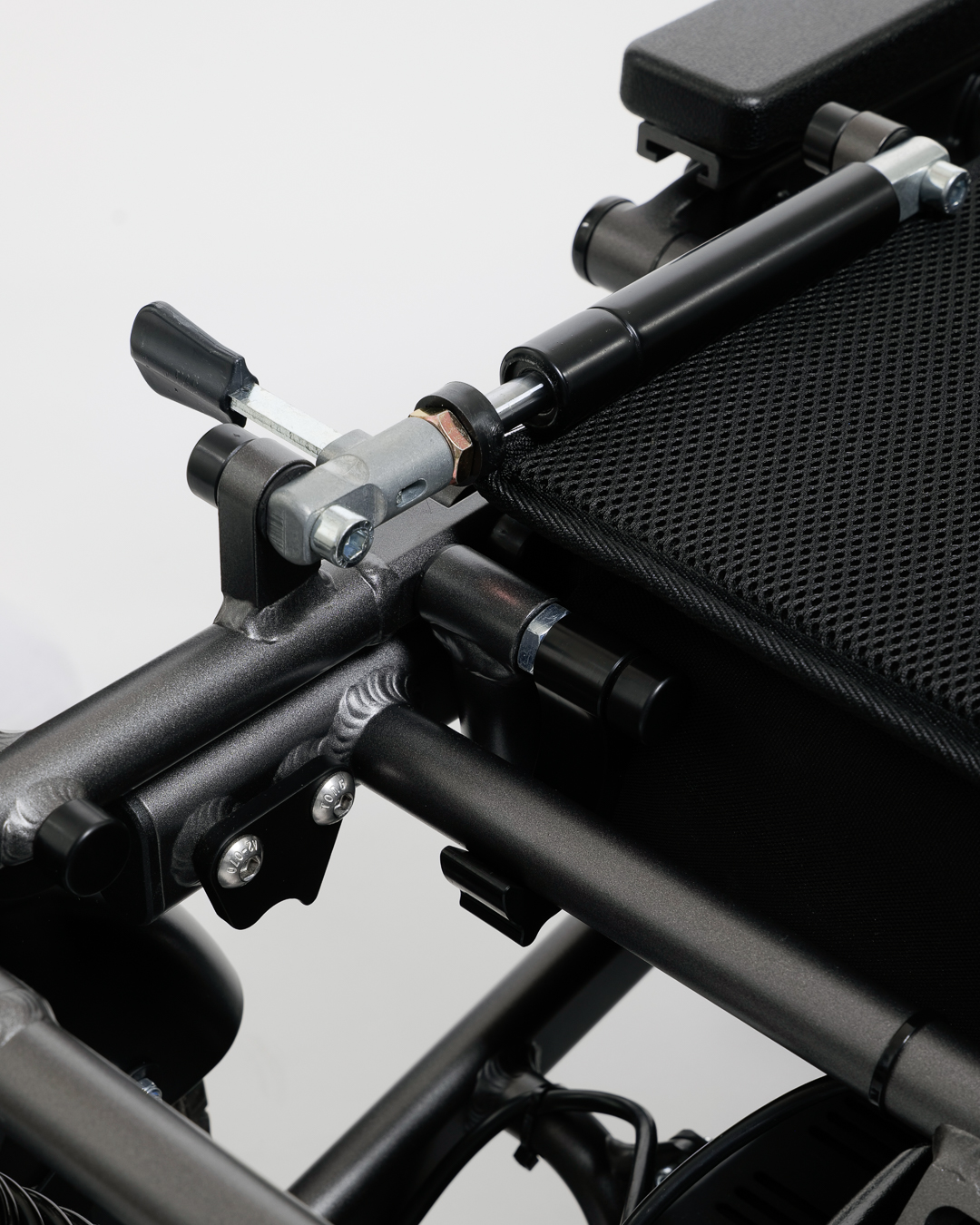 Ses accoudoirs et son repose-pieds réglables offrent un des ajustements personnalisés. Équipé de trois compartiments pour batteries, ce modèle offre une utilisation prolongée pour les trajets plus longs. Lorsqu’il est plié, un verrou de sécurité pratique maintient le fauteuil roulant en position pliée pour faciliter transport et rangement.