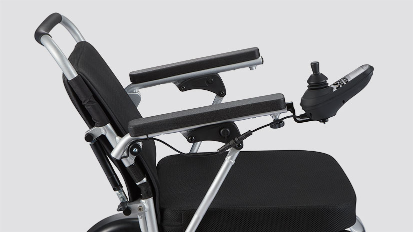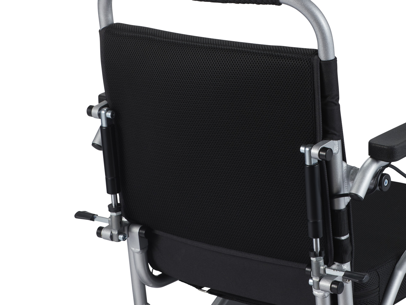 De grote achterwielen met luchtbanden zorgen zowel binnen- als buitenshuis voor een groot comfort, zelfs op ruig terrein. De verstelbare rugleuning, afgeronde rugleuningbuis en drie verschillende zitbreedtes vergroten het zitcomfort. De inklapbare voetsteun en opklapbare armleuningen maken het in- en uitstappen eenvoudiger.