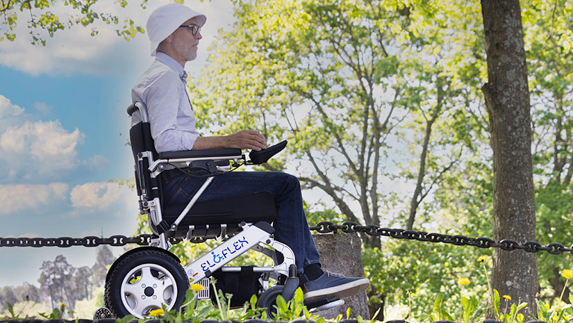 De opvallendste eigenschap van alle Eloflex-modellen is dat ze binnen enkele seconden eenvoudig kunnen worden opgeklapt. Dankzij het compacte ontwerp in combinatie met het lichtgewicht aluminium frame kan deze rolstoel gemakkelijk per auto of vliegtuig vervoerd worden.