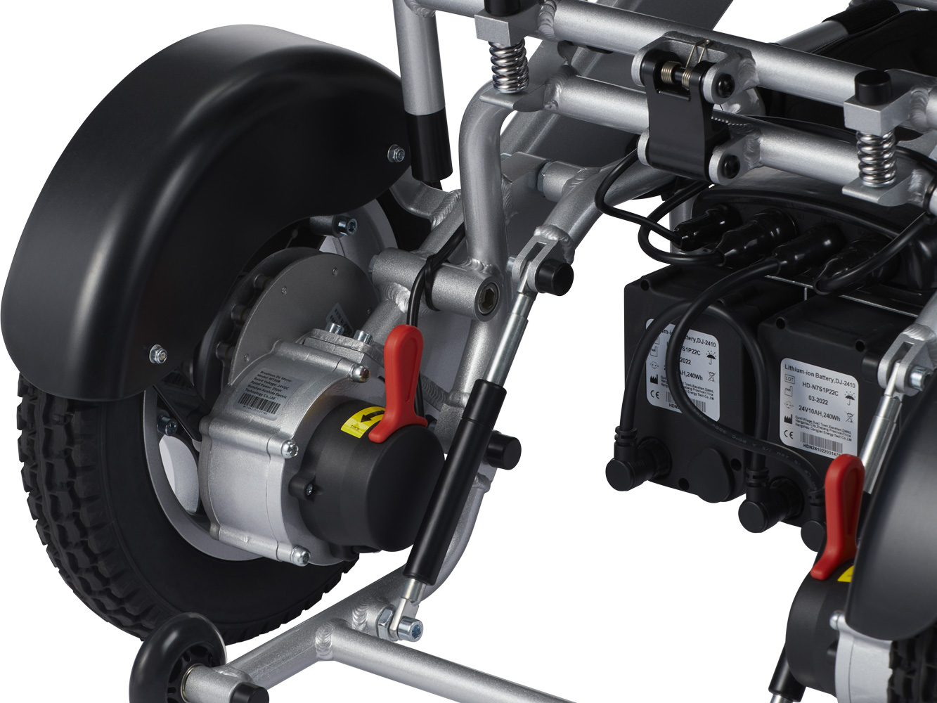 Dit model heeft twee robuuste motoren van 250 watt en maakt gebruik van de allernieuwste borstelloze technologie, waardoor het stroomverbruik en gewicht afnemen. Het resultaat is een groter bereik en een betere rijervaring.