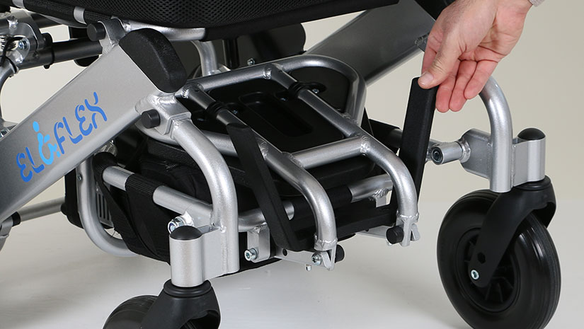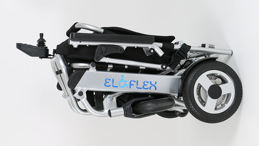 De opvallendste eigenschap van alle Eloflex-modellen is dat ze binnen enkele seconden eenvoudig kunnen worden opgeklapt. Dankzij het compacte ontwerp in combinatie met het lichtgewicht aluminium frame kan deze rolstoel gemakkelijk per auto of vliegtuig vervoerd worden.