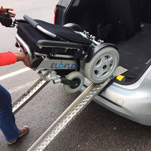 Voor een handige maar iets duurdere oplossing kunt u overwegen om een rolstoellift in de kofferbak van uw auto te installeren om het laden van Eloflex te vergemakkelijken. Dit is de beste oplossing als u in een rolstoel zit en uw Eloflex zelfstandig in de auto wilt kunnen vervoeren. Er zijn talloze liftoplossingen en -modellen op de markt, maar gezien het compacte, lichtgewicht ontwerp van uw Eloflex is een vrij eenvoudige rolstoellift vaak voldoende. We raden u aan contact op te nemen met de dichtstbijzijnde auto-inbouwshop voor meer informatie en advies.